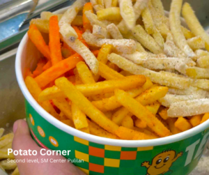 1. Mother’s Day Sur-fries. Start your day with Potato Corner’s famous thick-cut fries. They have signature dips that will satis-fry your mom’s cravings. Visit their newly opened branch at SM Center Pulilan.