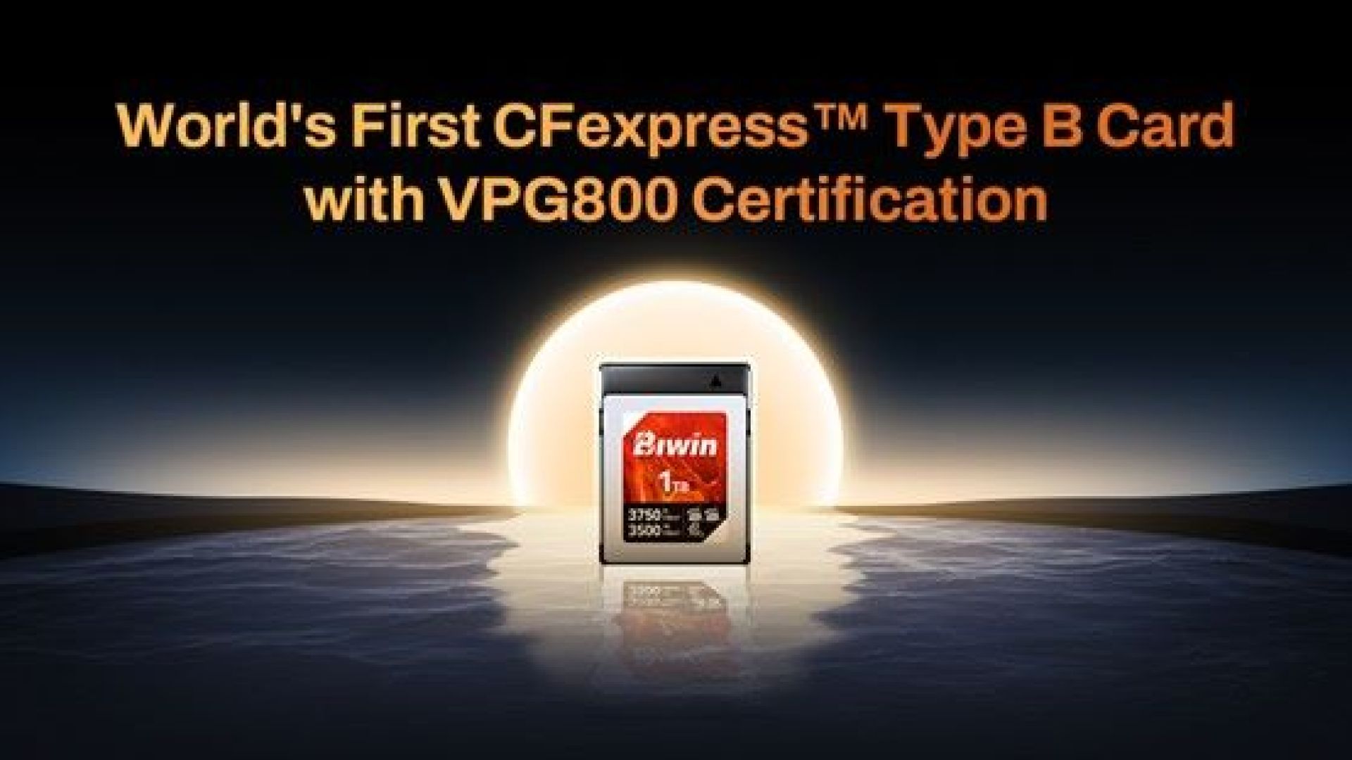 Biwin announces that its Amber CB500 CFexpress Type B card has become the world’s first CFexpress Type B card to receive VPG800 certification from the CompactFlash Association. With sustained write speeds of 800 MB/s guaranteed, the CB500 empowers filmmakers, cinematographers, and content creators to capture 8K RAW, high frame rate, and uncompressed video with stability.