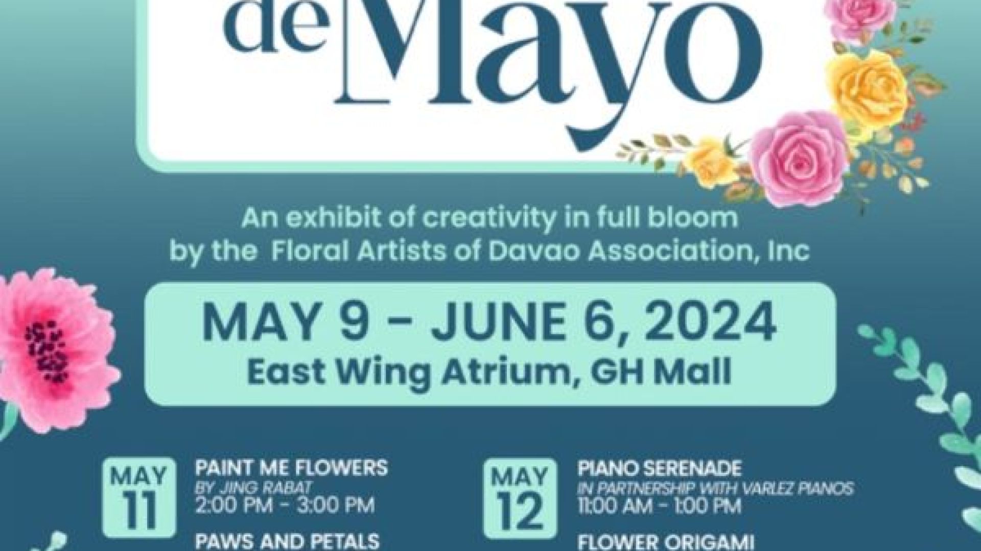 For the mom who loves florals, GH Mall will host an exhibit and a series of workshops organized by the Floral Artists of Davao Association at the East Wing Atrium. On May 11, check out Paint Me Flowers by Jing Rabat, a painting workshop from 2pm to 3pm, and Paws and Petals from 3pm to 5pm on May 11 at the East Wing Atrium of GH Mall.