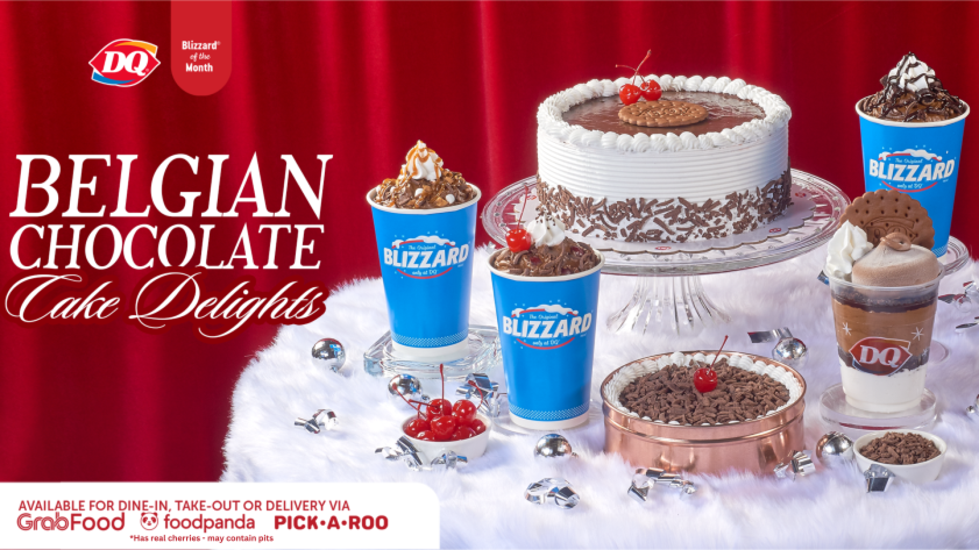 For a shareable treat that’s sure to be the centerpiece of your feast, there’s the new Belgian Chocolate Black Forest Blizzard Cake (starts at P949), a 100-percent ice cream cake made with DQ’s rich Belgian chocolate soft serve, signature cake crunch, and chocolate fudge, made more heavenly with real cherries and chocolate chunks, all wrapped in a velvety smooth frosting sprinkled with chocolate shavings and topped with more cherries and a DQ sandwich wafer.