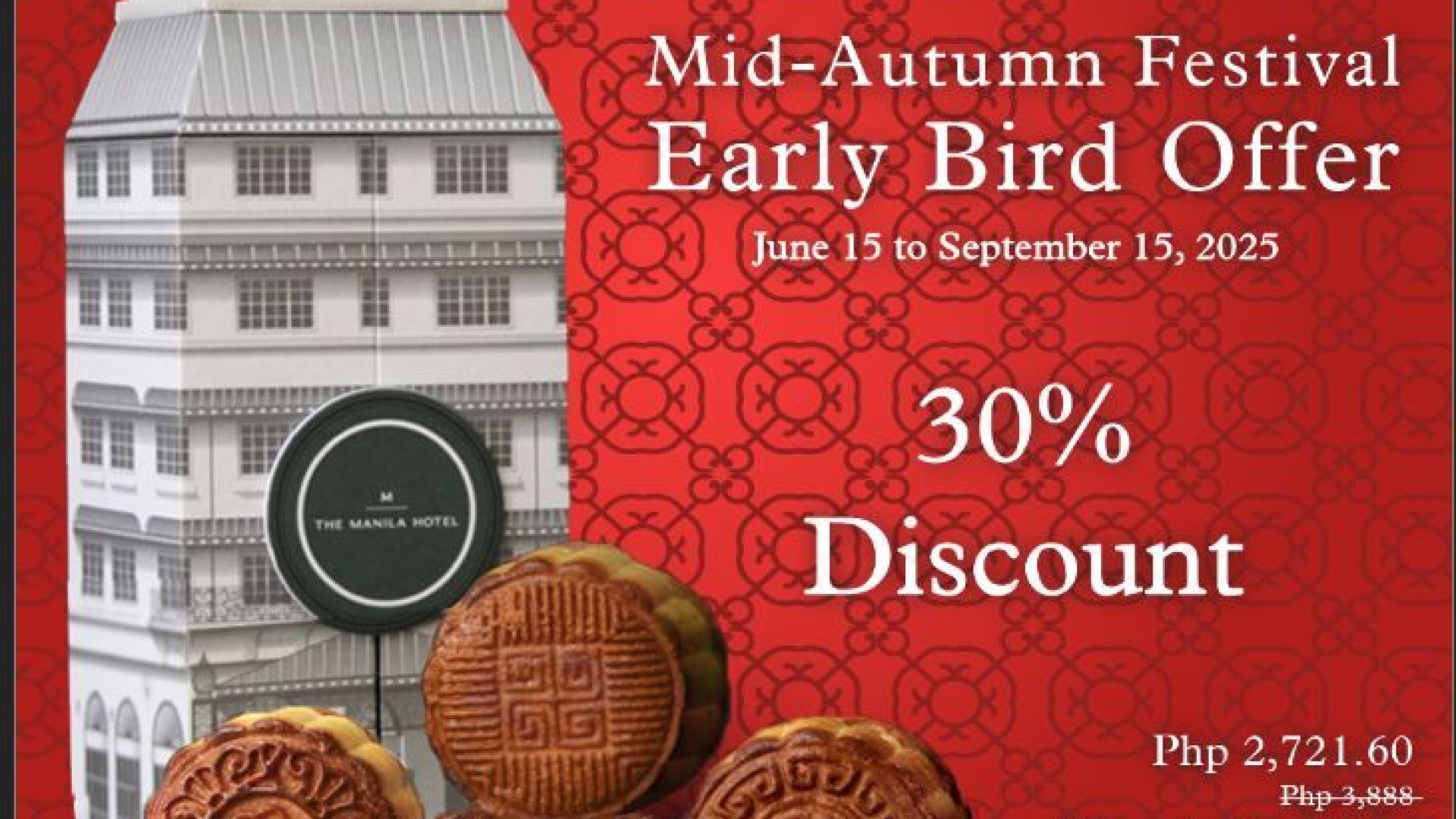 Each set is presented in an elegant commemorative box that pays tribute to the iconic façade of The Manila Hotel, making it a delectable gift and a timeless keepsake. The Mooncake Box of Four is priced at Php 3,888 nett. Guests may enjoy an early bird offer of 30% off until September 15, 2025, bringing the price down to only Php 2721. 60 nett. Regular selling price applies from September 16 to October 6, 2025. Pick-up of orders starts on September 16. The early bird offer is subject to terms and conditions. Per DTI Fair Trade Permit No. FTEB-229154 Series of 2025.